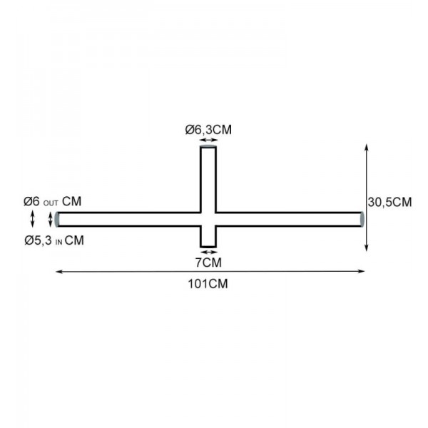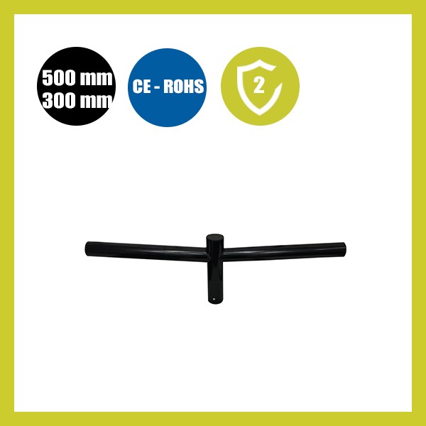 La Cruceta de 2 brazos está fabricada en tubo de acero. Tiene la posibilidad de elegir la terminación en diferentes diámetros (bajo pedido). Recubrimiento de pintura en polvo de poliéster, pulverizado electro-estáticamente y sublimado al horno. Resistente a la corrosión. Su color estándar es en negro pero tiene la posibilidad de pintarla en cualquier color de la carta RAL (bajo pedido)