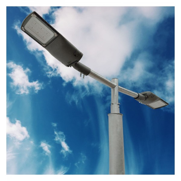 Cruceta de tubo de acero para dos luminarias o focos proyectores. Se puede instalar en Báculos, Columnas y Farolas LED