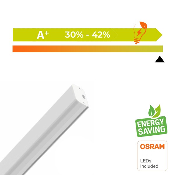 El diseño de nuestro lineal LED combina difusores de alta transmitancia que aportan un gran confort visual y eficiencia energética. Además, el accesorio de triángulo y cuadrado permite unirlos fácilmente, haciendo que la instalación sea rápida y sencilla.