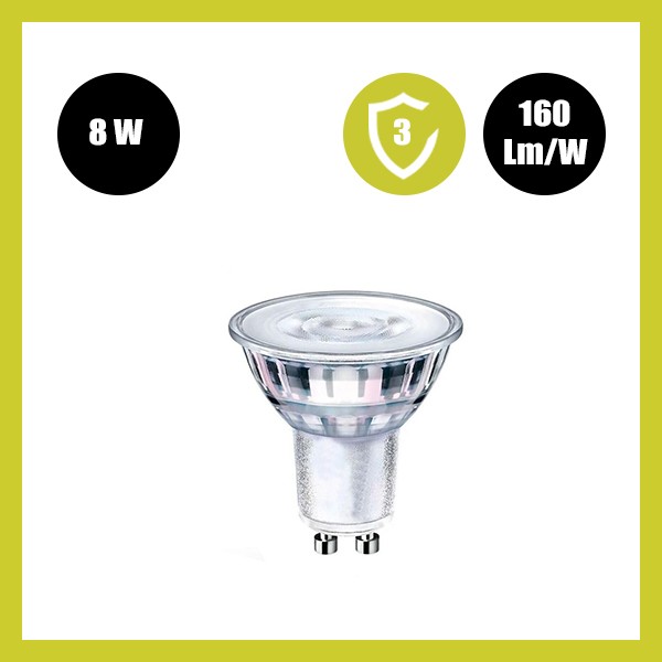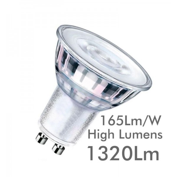 Dicroica LED GU10 8W - SMD1A1A - ALTA LUMINOSIDAD - Cristal - 24º