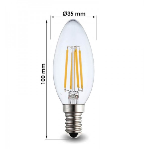 Bombilla LED Filamento Vela 4W E14 C35
