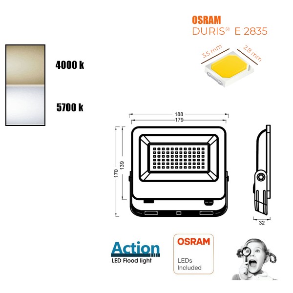 Foco Proyector LED 50W - ACTION PRO - OSRAM CHIP DURIS E2835