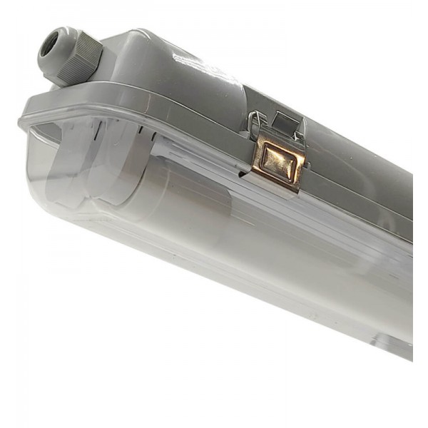 Pantalla estanca diseñada específicamente para dos tubos LED de 150cm. Dispone de una protección IP65 de modo que es apta para exteriores. Está compuesta por base de ABS y difusor resistente al calor fabricado en Policarbonato.
