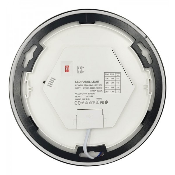 Plafón + Downlight LED - Circular- BONN Negro - Potencia Ajustable 18W - 16W - 14W - 12W - 5CCT - SMD2835 140Lm/W - IP44