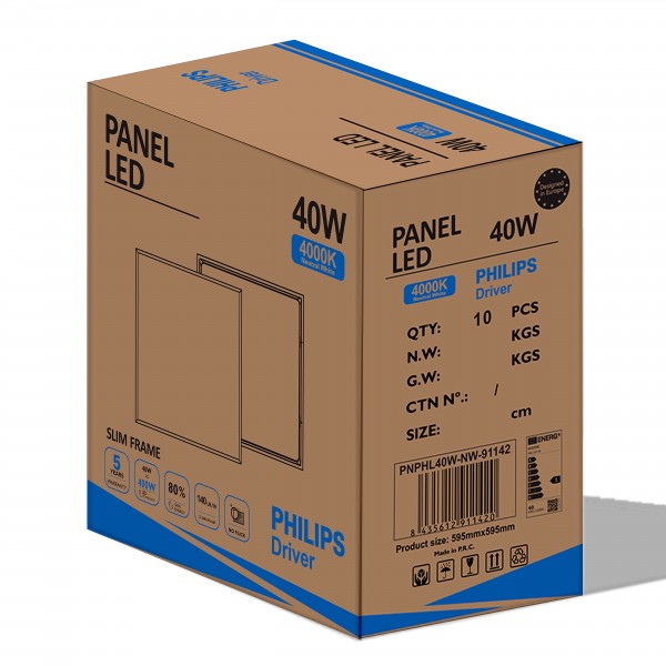 PACK 10 Panel LED 60x60 -SLIM FRAME- 40W - Philips Driver - Marco Blanco- No Flick- Certificación ENEC -