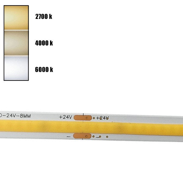 Tira LED COB 24V | 320 LED/M | 5m | FLIP CHIP | 1000Lm |12W/M | CRI90 | IP20