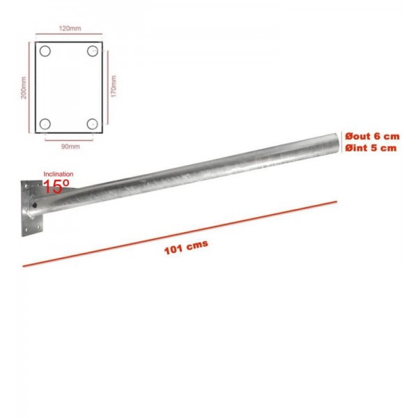 É feito de aço, preparado para suportar condições climáticas difíceis, como chuva, vento, sol... Aço de 60mm de diâmetro com uma protrusão de 100cm, com tratamento de galvanização por imersão a quente resistente.