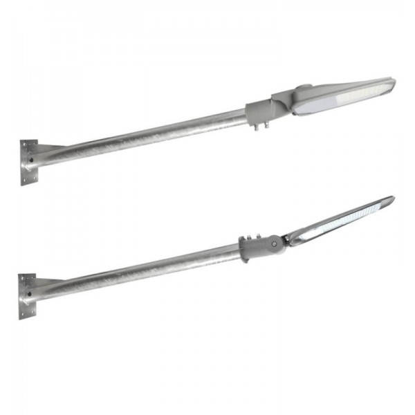 Braço feito de aço galvanizado por imersão a quente; Com uma medida de 100cm é adaptável em ruas com espaço pequeno como em grandes praças, sem quebrar a estética e preservar o meio ambiente.