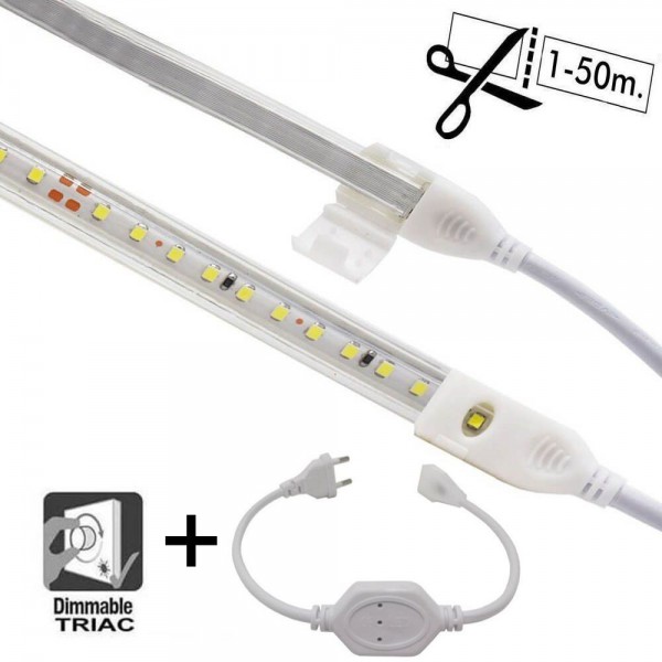 Tira LED 10W - CORTE A MEDIDA - Regulable 220V AC SMD 2835 120 LED/m IP65 - 13mm