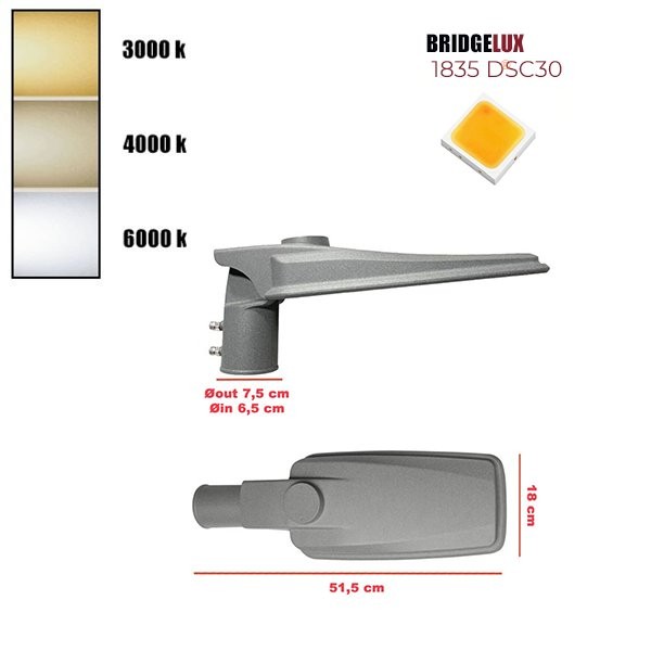 O 60W ASKER LED Street Light é feito de diodos SMD 3030 Bridgelux de alto brilho, que é capaz de gerar grande iluminação em qualquer espaço externo de iluminação pública. É hora de substituir as antigas lâmpadas de rua com as novas com tecnologia LED e você pode conseguir uma redução de até 80% no consumo de energia.