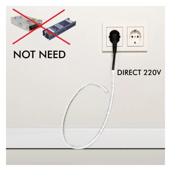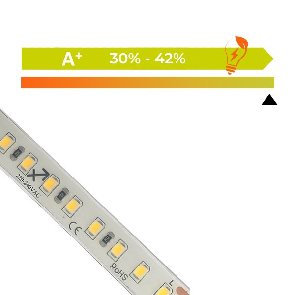 Fita LED PROFISSIONAL 14W por metro, 220V com comprimento de 20 metros. Projetado para colocação interna. Perfeito para ILUMINAR todos os tipos de espaços. NÃO necessita de fonte de alimentação e é conveniente instalá-lo sobre um perfil de alumínio para obter uma boa dissipação de calor.