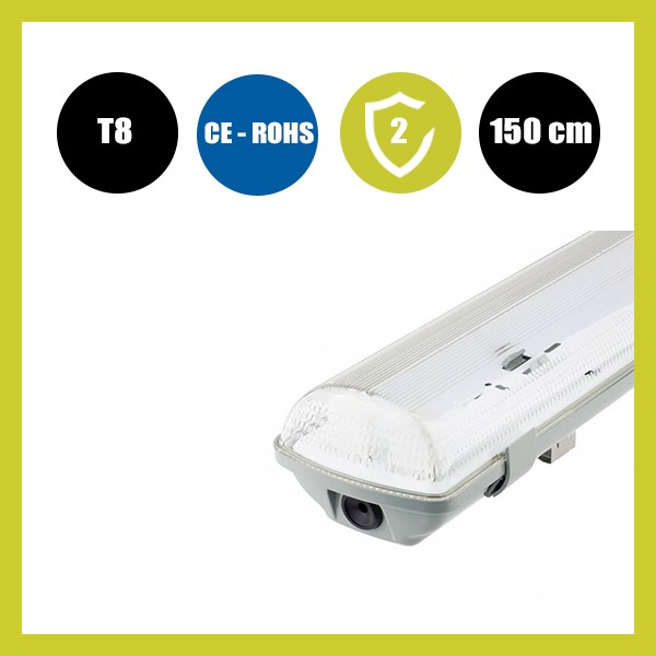 Tela impermeável projetada especificamente para dois tubos de LED de 150cm. Tem uma proteção IP65 para que seja adequado para o exterior. É composto por base ABS e difusor resistente ao calor feito de policarbonato.