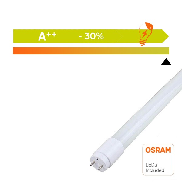 O TUBO LED DE ALTA LUMINOSIDADE T8 de 150cm SMD 2835 OSRAM CHIP 130 Lm / W e potência de 20W é uma solução excelente e econômica para a substituição de tubos fluorescentes T8. A sua ligação direta à rede elétrica permite eliminar o consumo remanescente de balastros e reatores, permitindo uma vida útil mais longa, menores requisitos de manutenção, um arranque rápido e um efeito sem cintilação. Inclui acionador de partida LED.